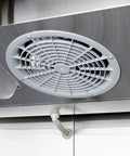 Mit Umluftkühlung mit automatischer Abtauung und oben aufliegender Kompressor.