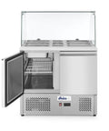 Die Arbeitsplatte bietet Platz für 2x GN 1/1 und 3x GN 1/6 Behälter (max. Höhe 150 mm).