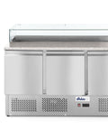 Mit Glas Abdeckung mit Platz für 8x GN 1/6 (max. Höhe 150 mm) Kühlraumabmessungen: 1295x595x(H)500 mm.