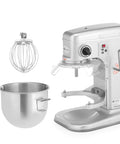 Inklusive Schüssel, Schläger, Schneebesen und Teighaken aus Edelstahl.