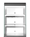 3 Einlegeböden mit Heizlampen auf jeder Ebene.